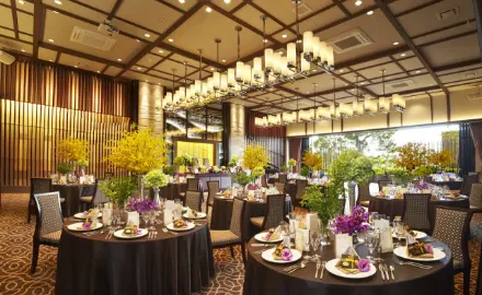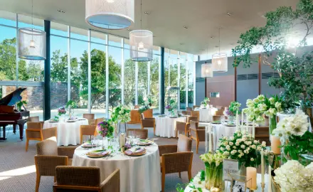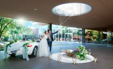 居心地の良さにこだわった全館バリアフリーの館内には、流れる滝の水音が響き渡り、くつろぎ空間が広がります。ガーデンの美しい景色を眺めることができる披露宴会場で「二人らしくもてなす」至福のひと時をゲストにプレゼントしませんか。経験豊富なスタッフと一緒に二人の希望や想いをカタチに。記憶に刻む感動のウェディングをここで叶えましょう。