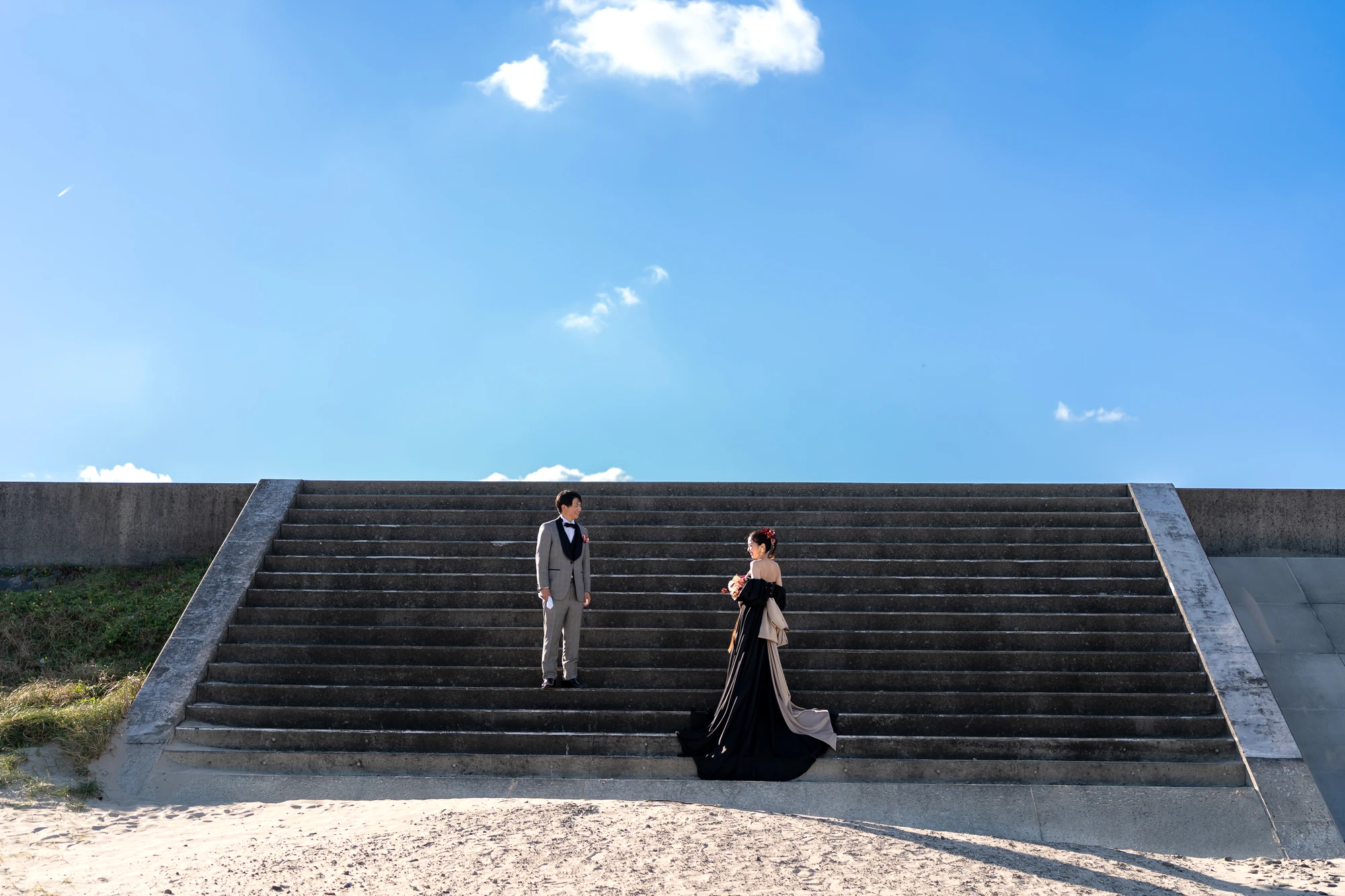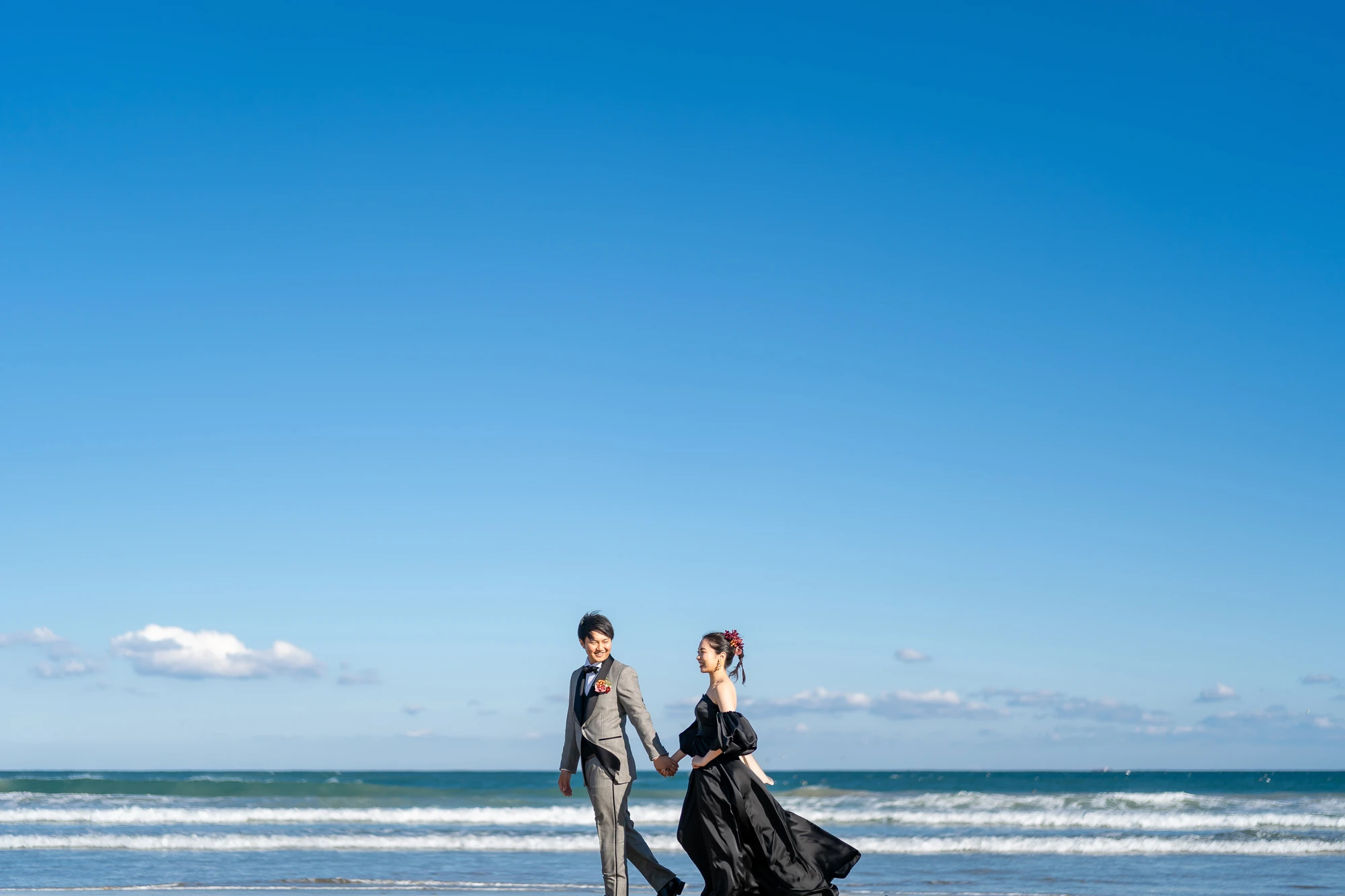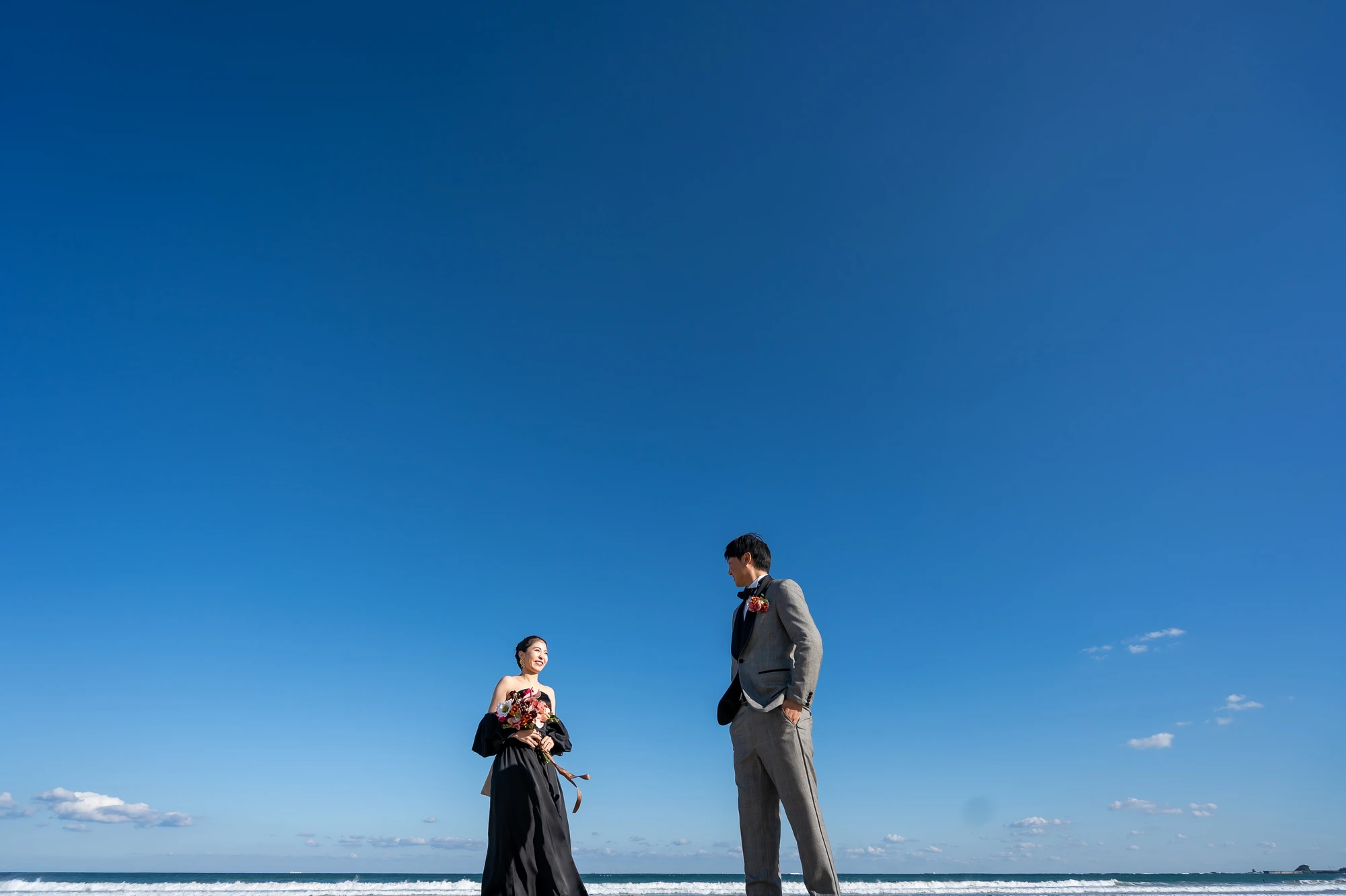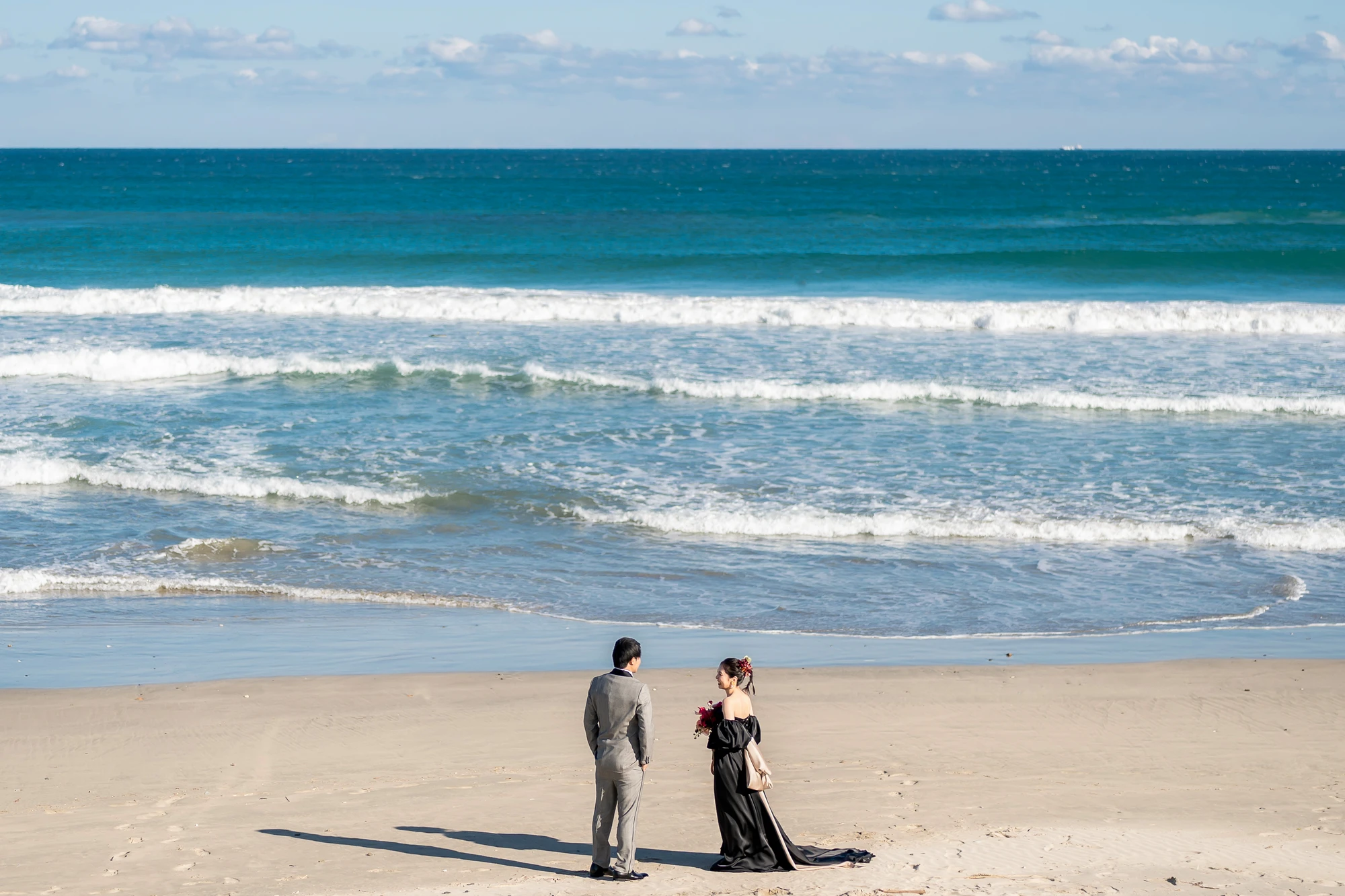 海で撮影をご希望の方におすすめ。ゆるやかなカーブを描く砂浜が長く続きます。白い砂浜が美しく人気のスポット。