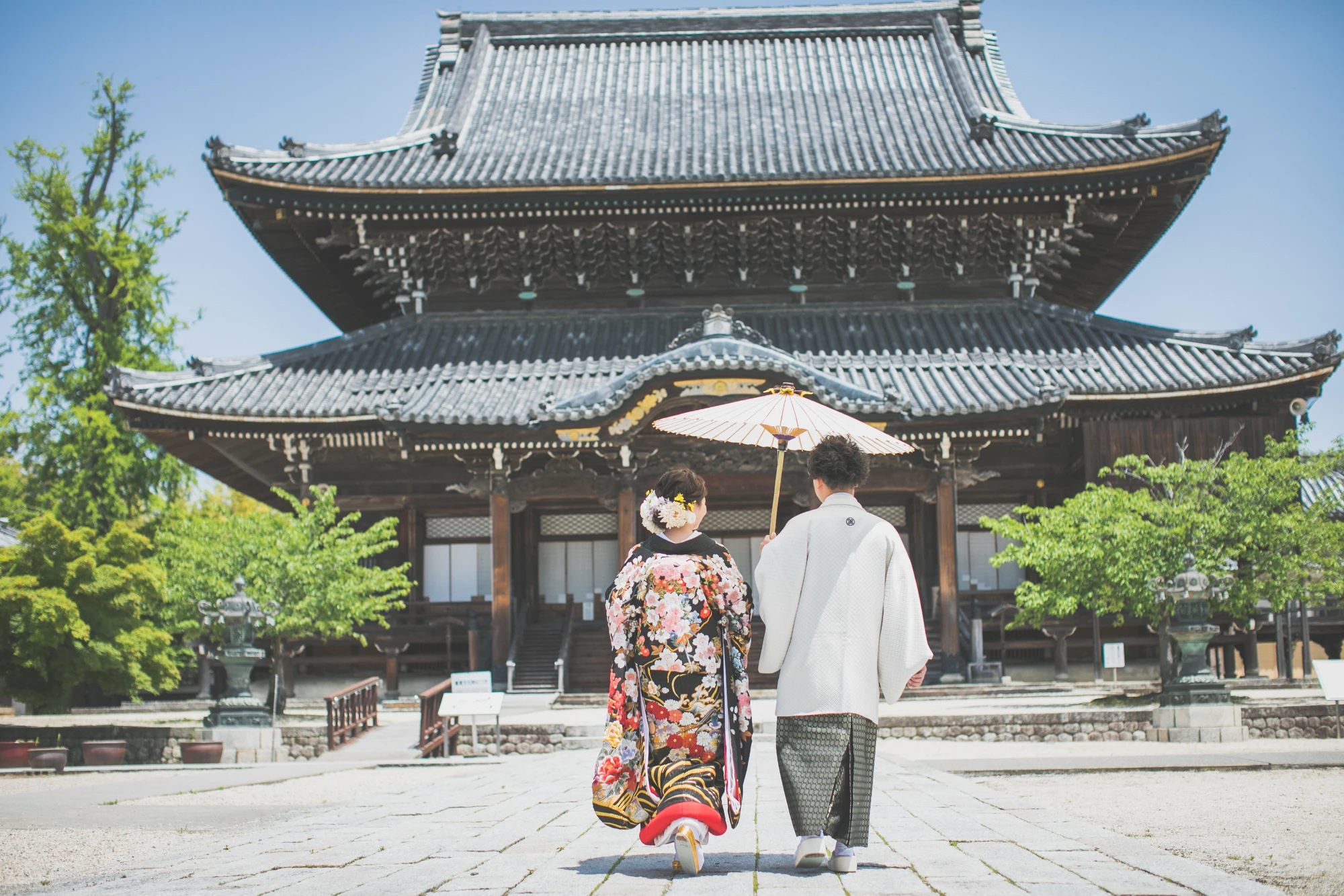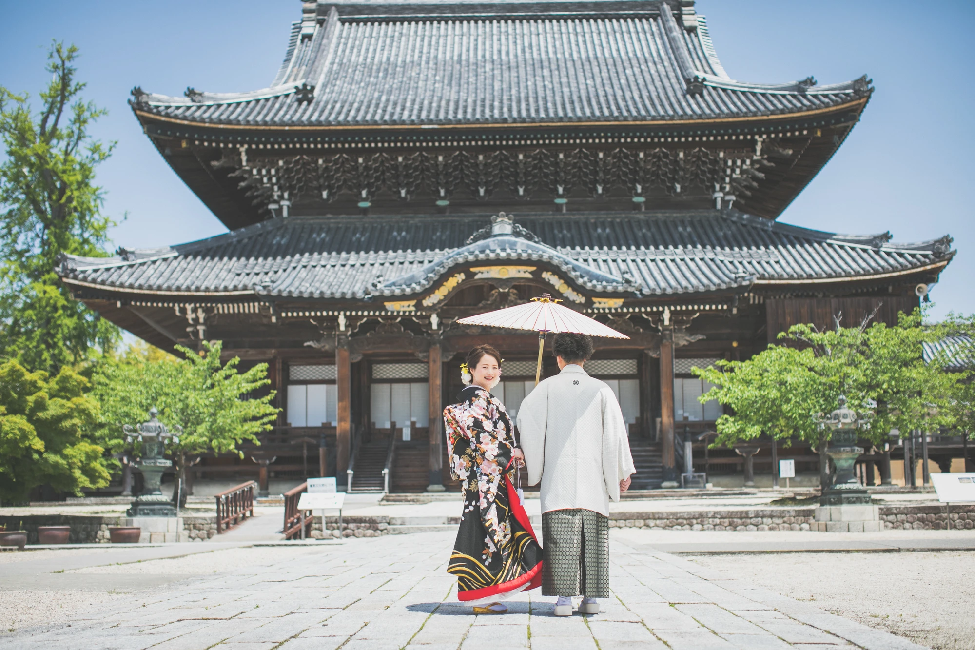 真宗高田派の総本山で、建造物として県内初の国宝に指定された立派なお寺。荘厳な雰囲気の写真を残せる場所。和装撮影におすすめ。