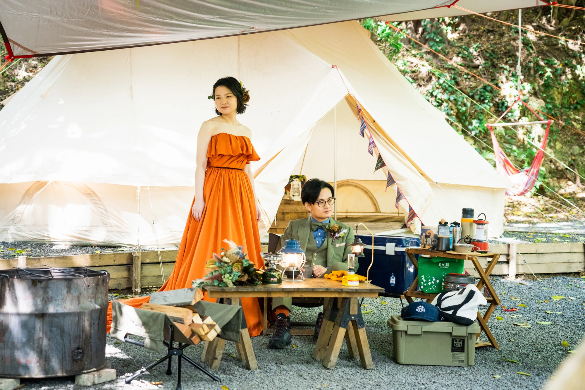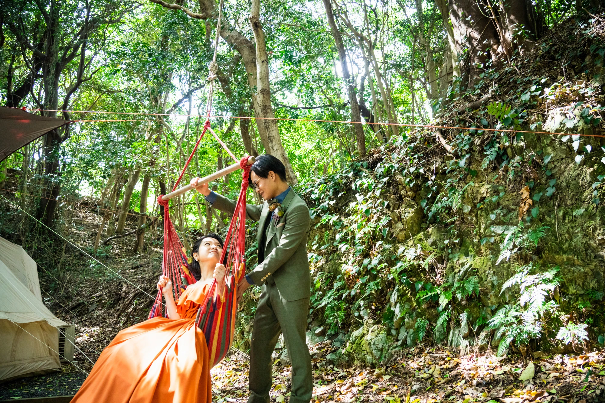 目の前に田曽の浦が広がる豊富なアクティビティーが楽しめるグランピング施設。海・森・空を感じながらロケーション撮影が楽しめる場所。