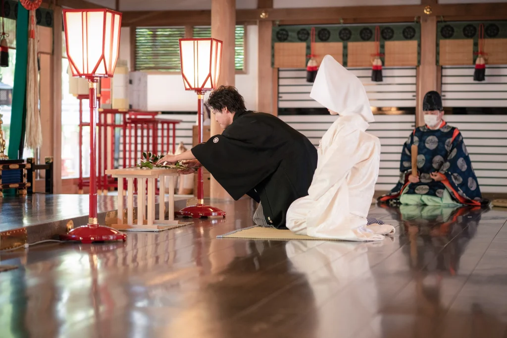 新婦様のご実家がある三重県志摩市で、白無垢のお支度から始まった結婚式当日。ご近所の方々やご友人、懐かしい同級生や恩師までが駆けつけてくださり、「おめでとう!」の声が街にあふれる、温かな祝福の時間となりました。その後は花嫁車に乗って伊勢市の猿田彦神社へ。厳かな雰囲気の中で執り行われた神前式では、ご家族と大切な方々に見守られながら、凛としたお姿で誓いを交わされました。挙式後は、華やかな色打掛にお着替えをし、神社周辺の風情あるロケーションで撮影を実施。伝統と感謝、そして地域の人々とのつながりを感じる、心温まる一日となりました。三重・志摩・伊勢で和婚をお考えの方に、ぜひ参考にしていただきたい一例です。