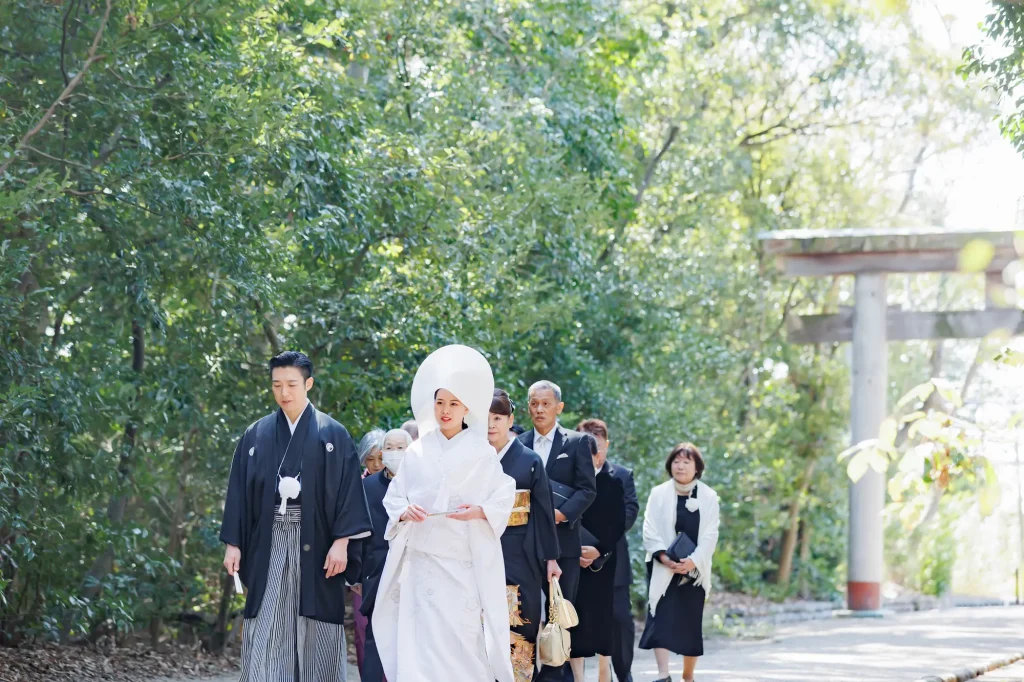 東京在住の私たちにとって、限られた訪問回数で準備が整う結婚式は理想的でした。三重への訪問は、衣装合わせ・会場見学・挙式当日の3回のみ。打ち合わせは主にオンラインとメールでスムーズに進み、遠方でも安心してお任せできました。特に印象的だったのは、90代の祖母が参加できるよう「津八幡宮」での神前式をご提案いただいたこと。祖母の自宅から最も近く、参道を歩く姿に家族全員が胸を打たれました。披露宴は地元の推薦もあり、ミシュラン掲載の「坐忘庵」さんを選択。美しい盛り付けのお料理や、祖母のために食材を細かくカットする心配りに感動しました。遠方からの結婚式を安心して叶えられるサポートと、心に寄り添う丁寧な対応に心から感謝しています。和婚・三重での神前式をご検討の方に、自信を持っておすすめできる会場です