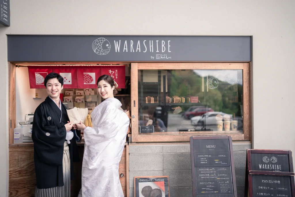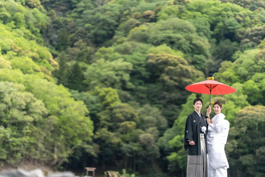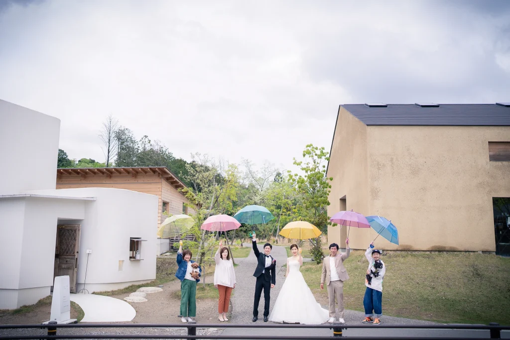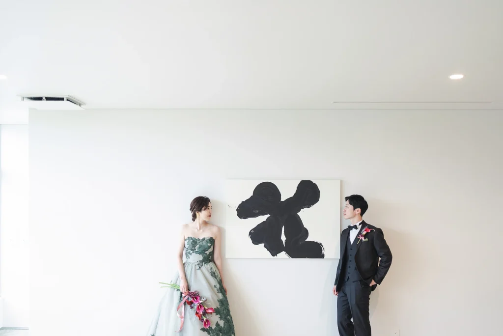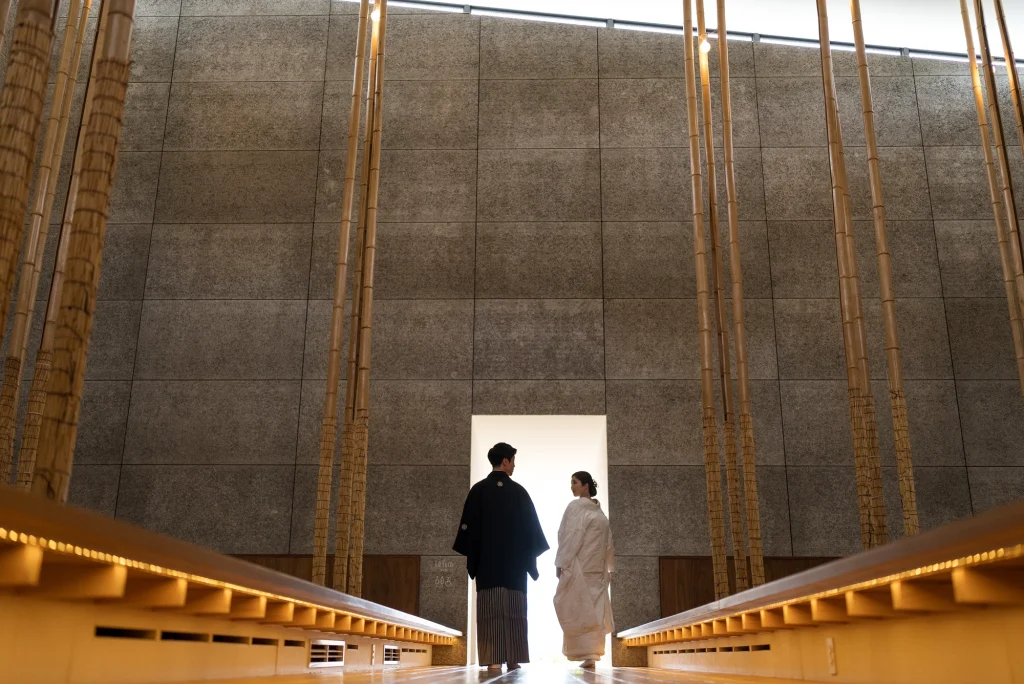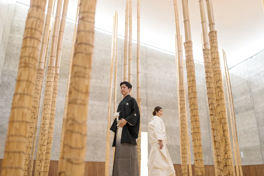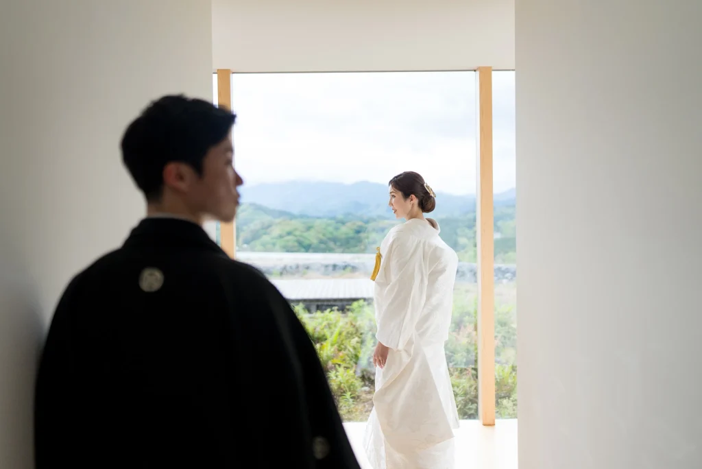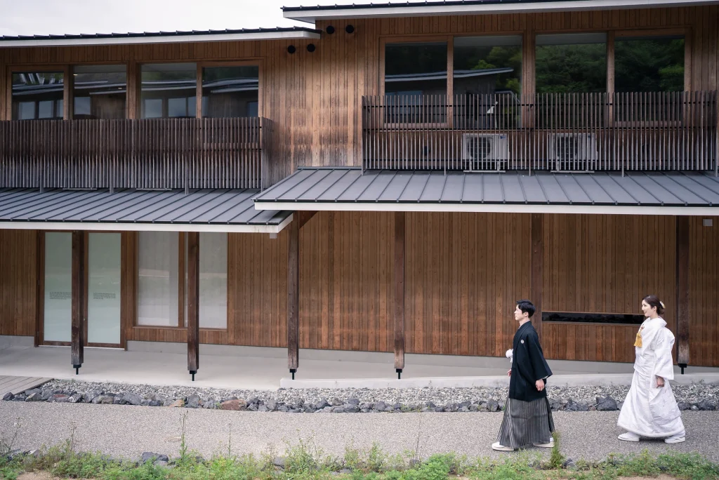 「旅先で一生の思い出に残るフォトウエディングを」というご希望からご提案させていただいたのは、多気町にある日本最大級の商業リゾート「VISON(ヴィソン)」。東京ドーム24個分もの広大な敷地には9つのエリアが広がり、その中でも今回撮影を行った「マルシェ ヴィソン」は、世界最大級の国際デザインコンペティションでも受賞歴を持つ注目のスポットです。今回は白無垢、ウエディングドレス、カラードレスの3種類のお衣裳でロケーション撮影を実施。和の雰囲気とモダンさが調和した空間は、どのお衣裳にもぴったりで、おしゃれで洗練されたフォトウエディングが叶いました。自然・建築・文化が融合するVISONは、非日常感とスタイリッシュな雰囲気が魅力。三重県でフォトウエディングをご検討の方には、バリエーション豊かな撮影が楽しめるVISONでの撮影を心からおすすめします。