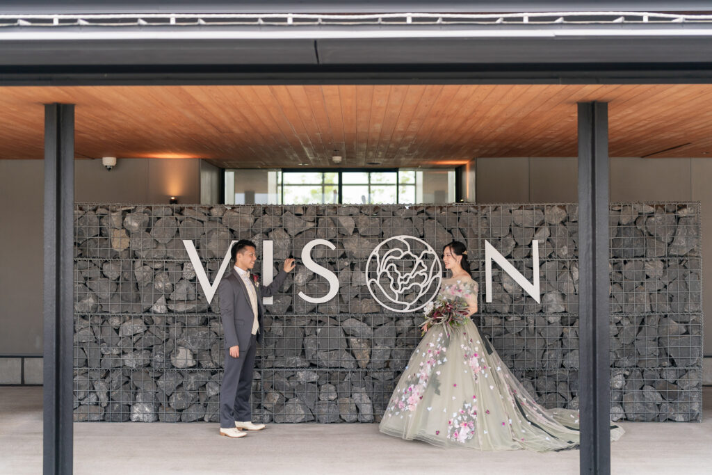 ヴィソンでウエディングをされたいと初めてご相談にお越しいただいた時から、「堅苦しくない、自然体で感謝を伝えられる一日にしたい」とお話しくださっていたおふたり。豊かな自然と洗練された空間が共存するヴィソンでのウエディングはまさにその想いにぴったりだったと思います。